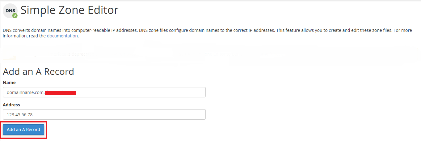 How to add ‘A Record’ to Simple Zone Editor :