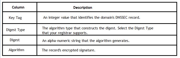 Click Enable. The system will generate a new DNSSEC key, and a new line will appear that contains the following information